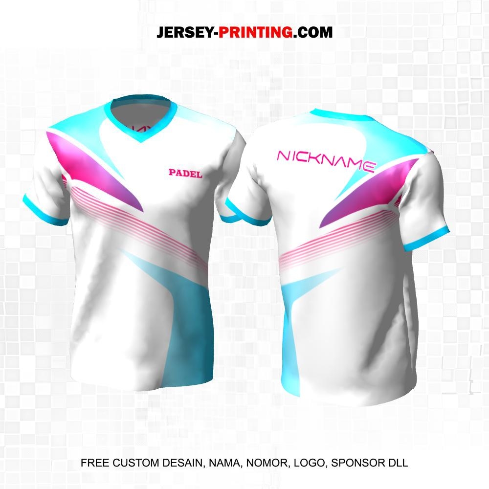 Jersey Olahraga Sport Padel Putih Pink Biru Motif Abstrak Garis 44