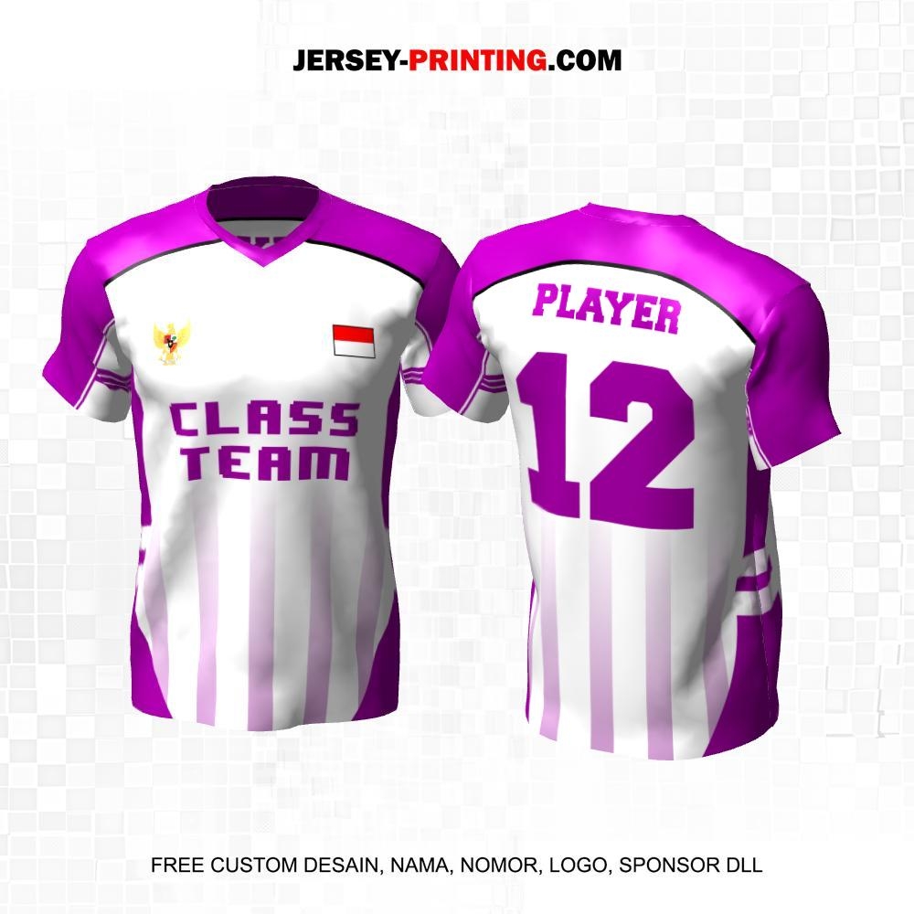 Jersey Kelas Retro Putih Ungu Motif Garis 79