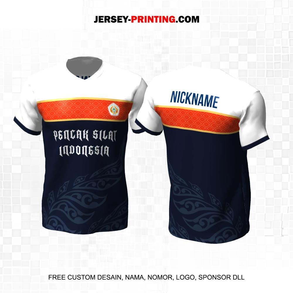 Jersey Pencak Silat Navy Putih Orange Motif Geometris 416
