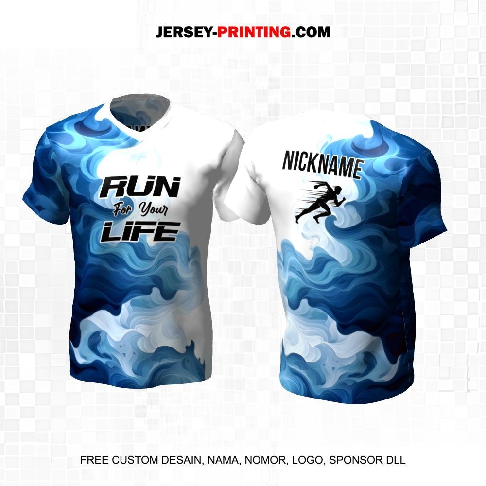 Jersey Lari Biru Putih Motif Abstrak Liquid 519