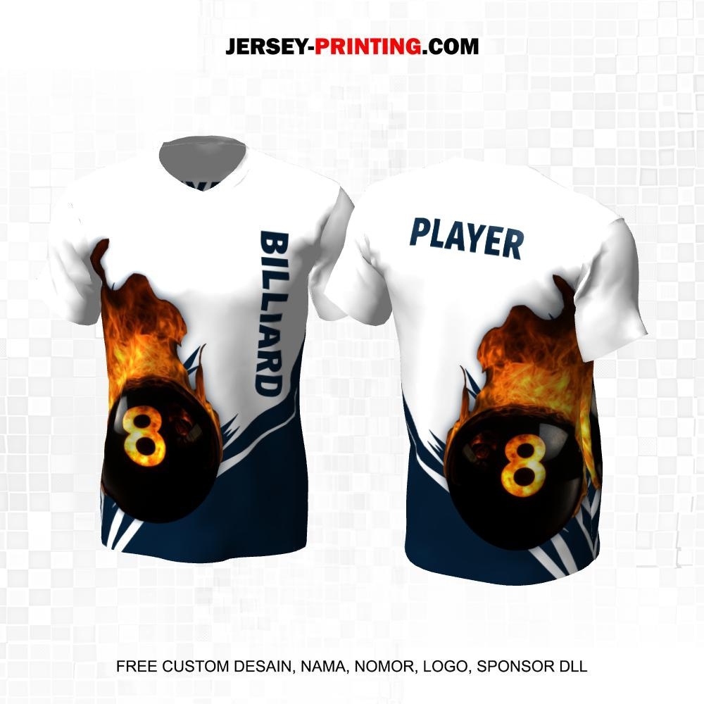 Jersey Billiard Putih Navy Motif Abstrak Bola Billiard 33