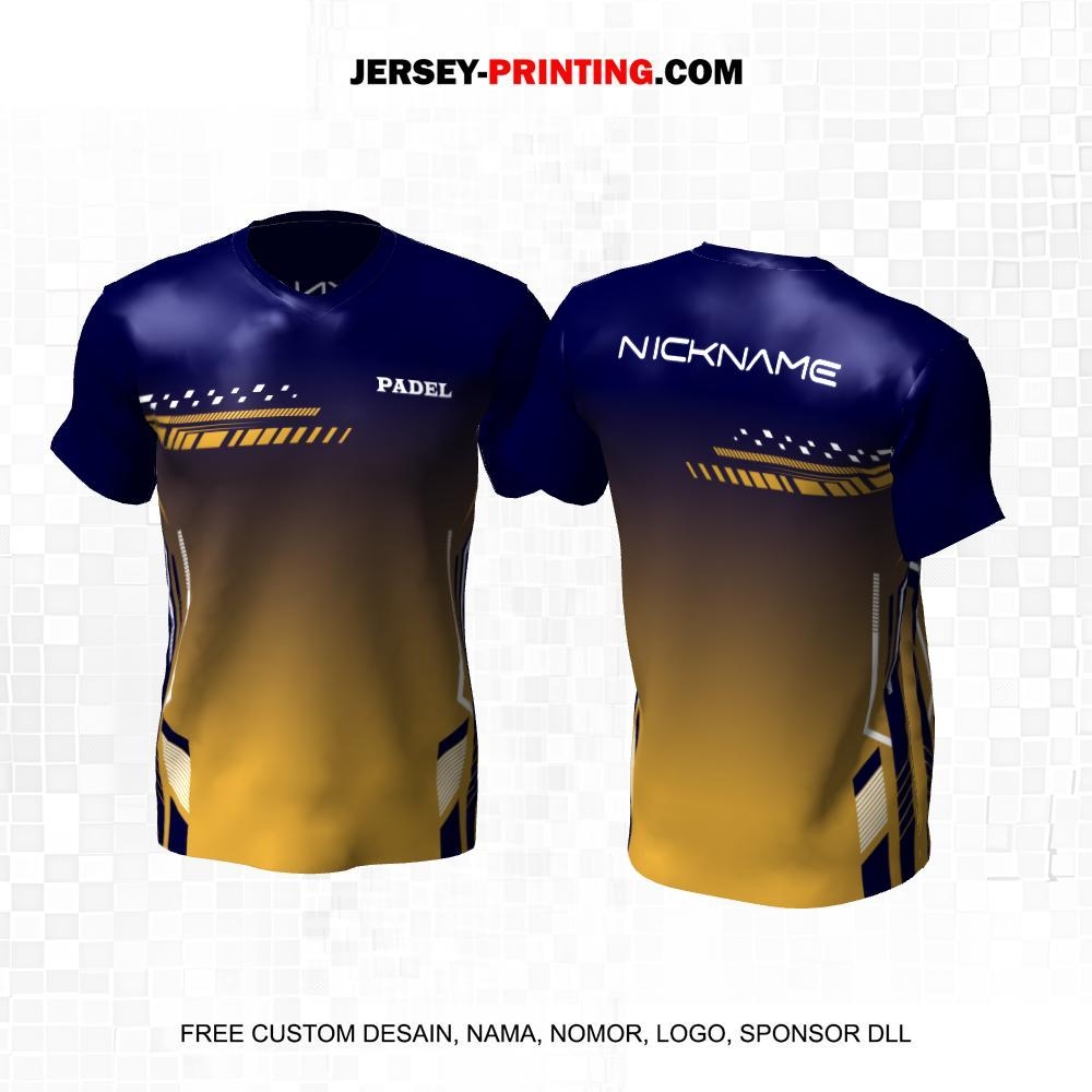 Jersey Olahraga Sport Padel Navy Gold Motif Geometris 48