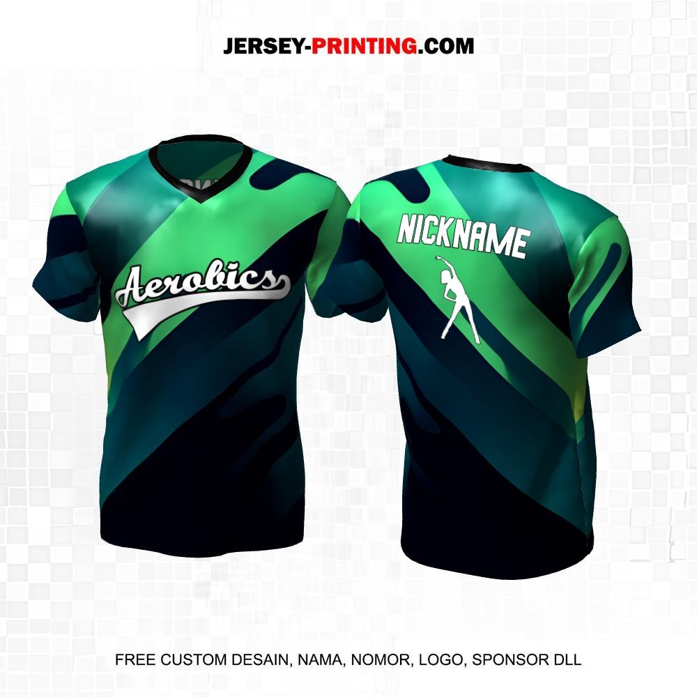 Jersey Olahraga Senam Aerobik Fitness Hitam Hijau Motif Abstrak 43