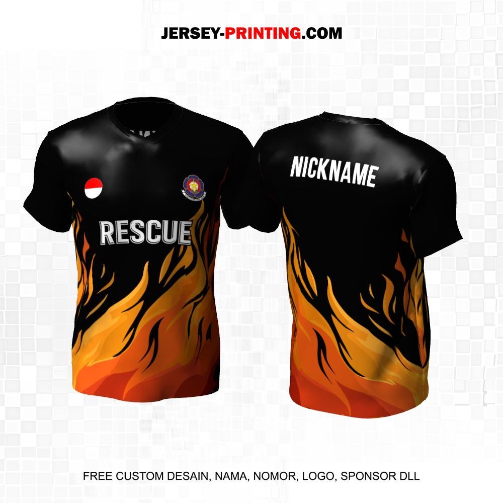 Jersey Damkar Pemadam Kebakaran Hitam Orange Motif Api 123