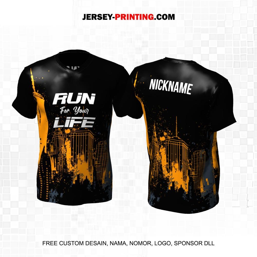 Jersey Lari Hitam Kuning Motif Abstrak Perkotaan 524