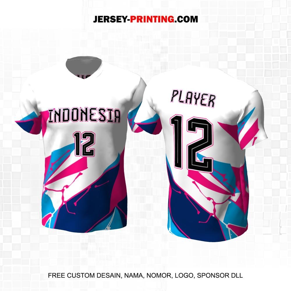 Jersey Basket Putih Pink Biru Motif Abstrak 177