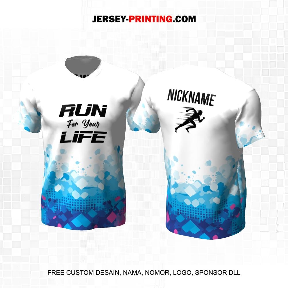 Jersey Lari Putih Biru Motif Abstrak 525
