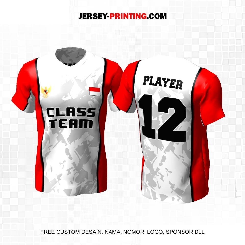 Jersey Kelas Putih Abu Merah Motif Abstrak 92