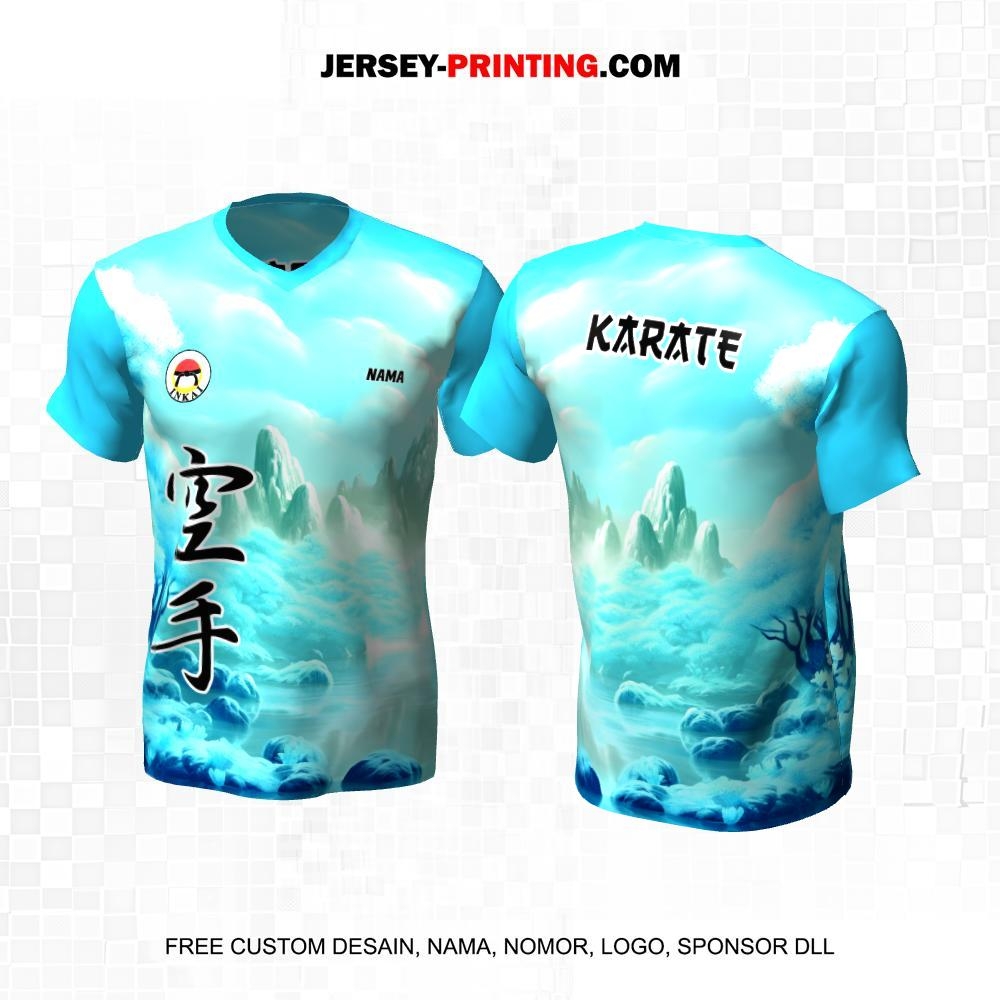 Jersey Karate Biru Motif Pemandangan Alam Gunung 267