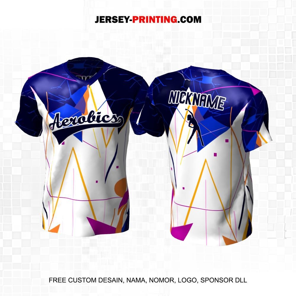 Jersey Olahraga Senam Aerobik Putih Biru Orange Pink Motif Abstrak 45