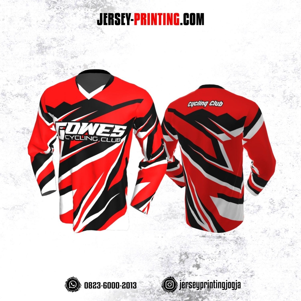 Jersey Gowes Sepeda Merah Hitam Putih Lengan Panjang