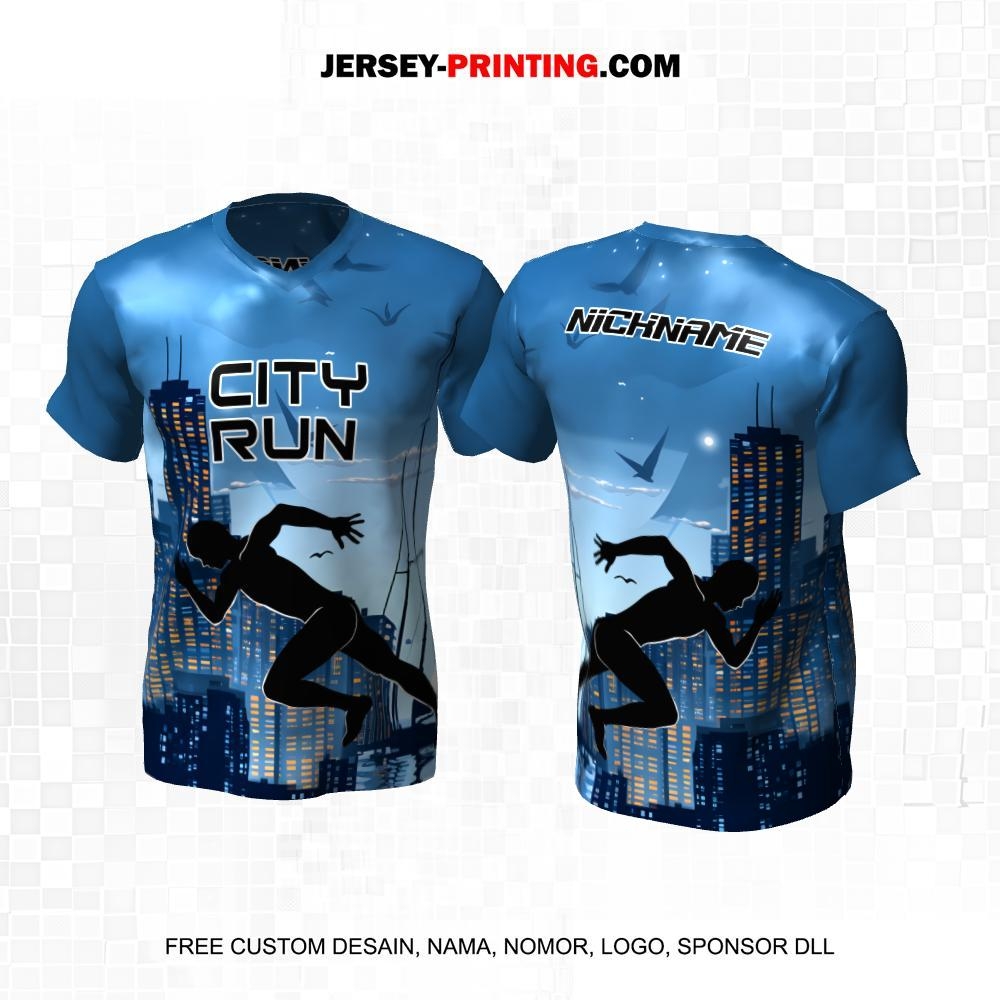 Jersey Lari Biru Motif Gedung Perkotaan 528