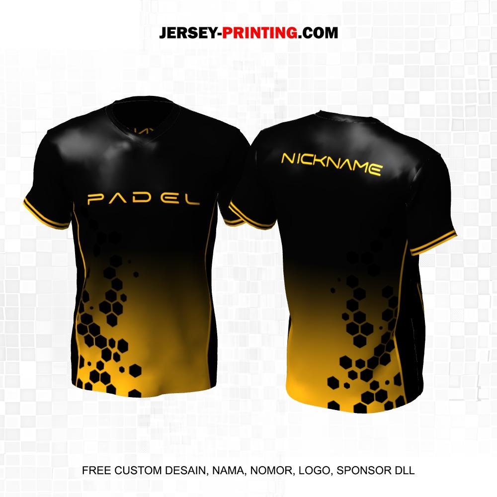 Jersey Olahraga Sport Padel Hitam Kuning Motif Honeycomb 52