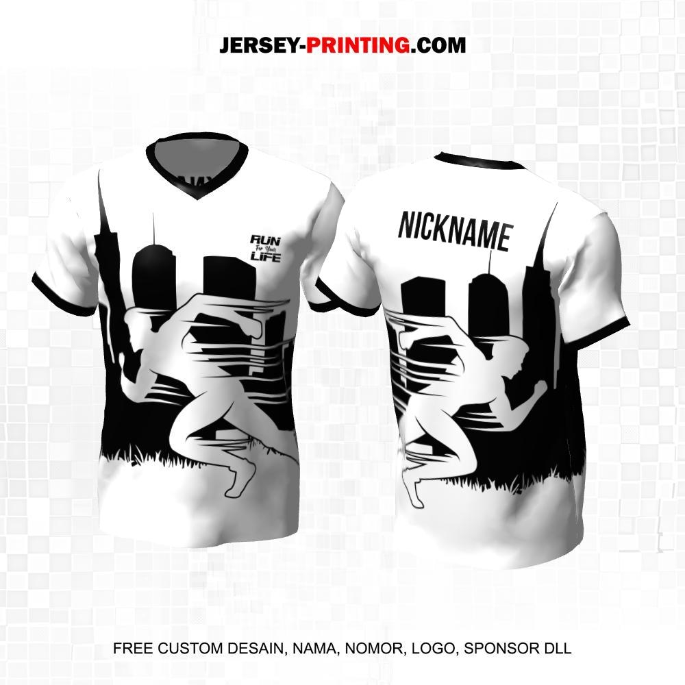 Jersey Lari Hitam Putih Motif Gedung Perkotaan 530