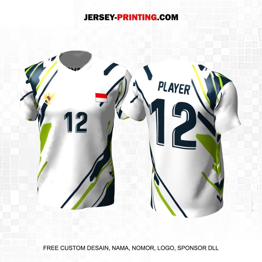 Jersey Volly Putih Hijau Motif Abstrak 457