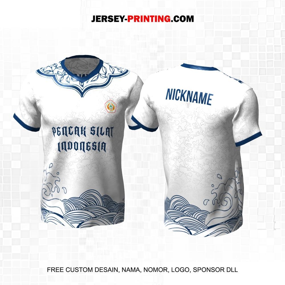 Jersey Pencak Silat Putih Biru Motif Ombak Batik 424