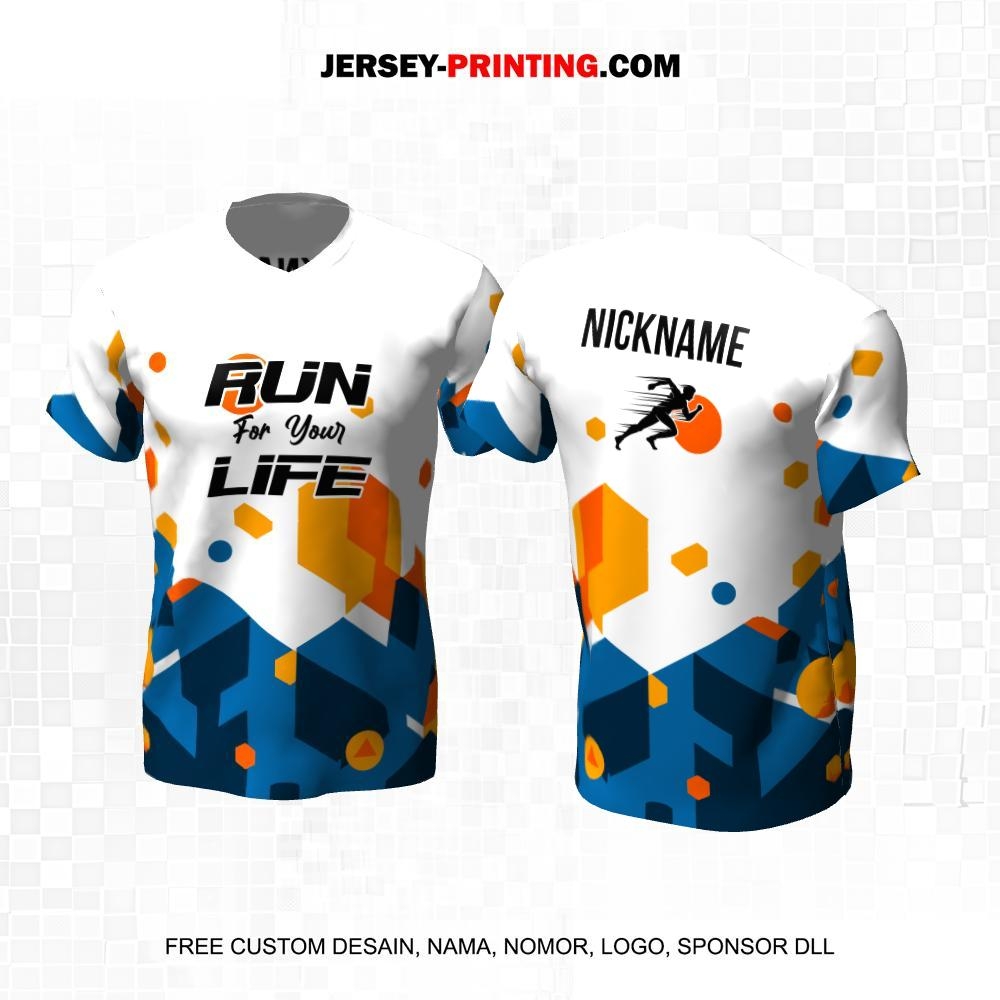 Jersey Lari Putih Orange Biru Motif Abstrak 551