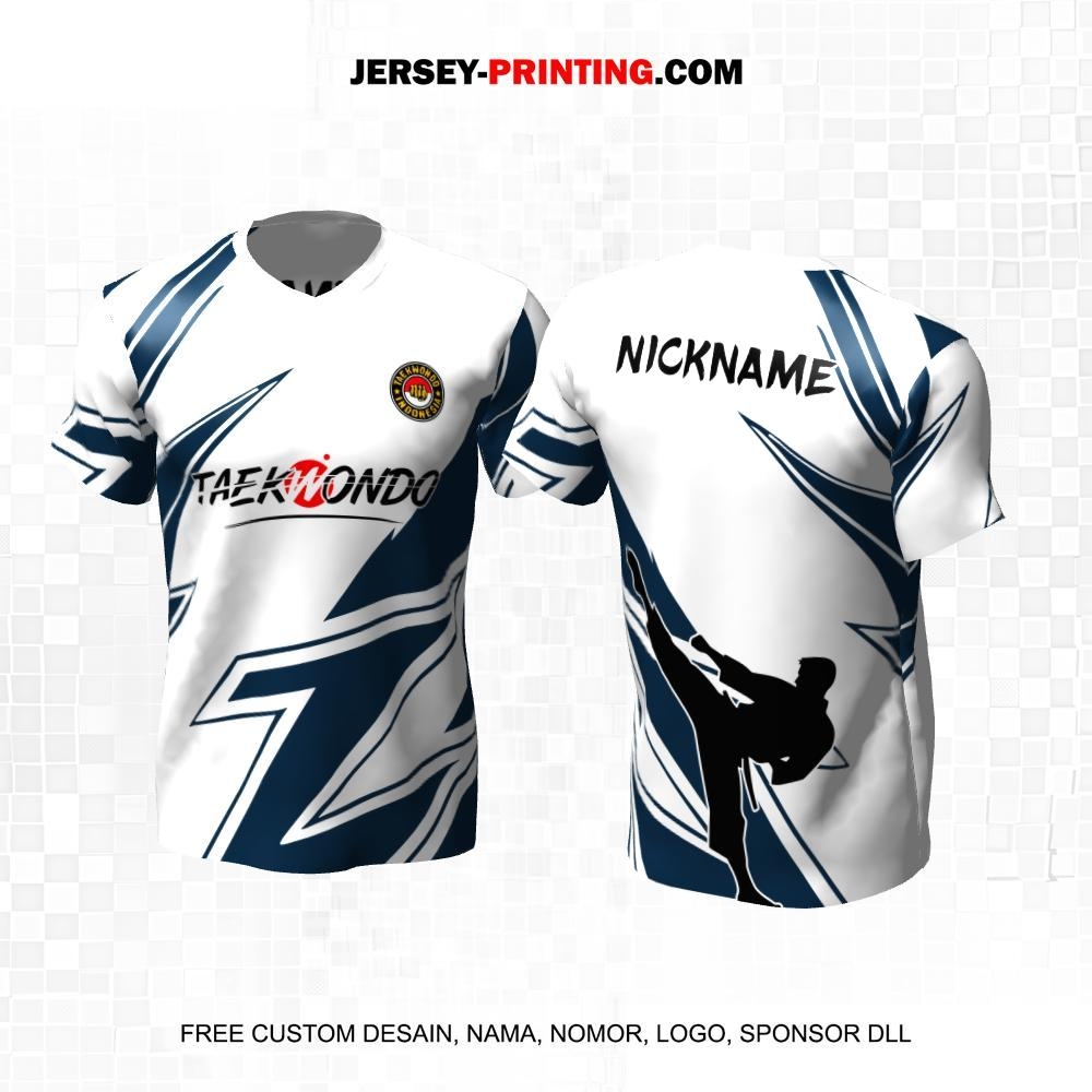 Jersey Taekwondo Putih Biru Motif Abstrak 187