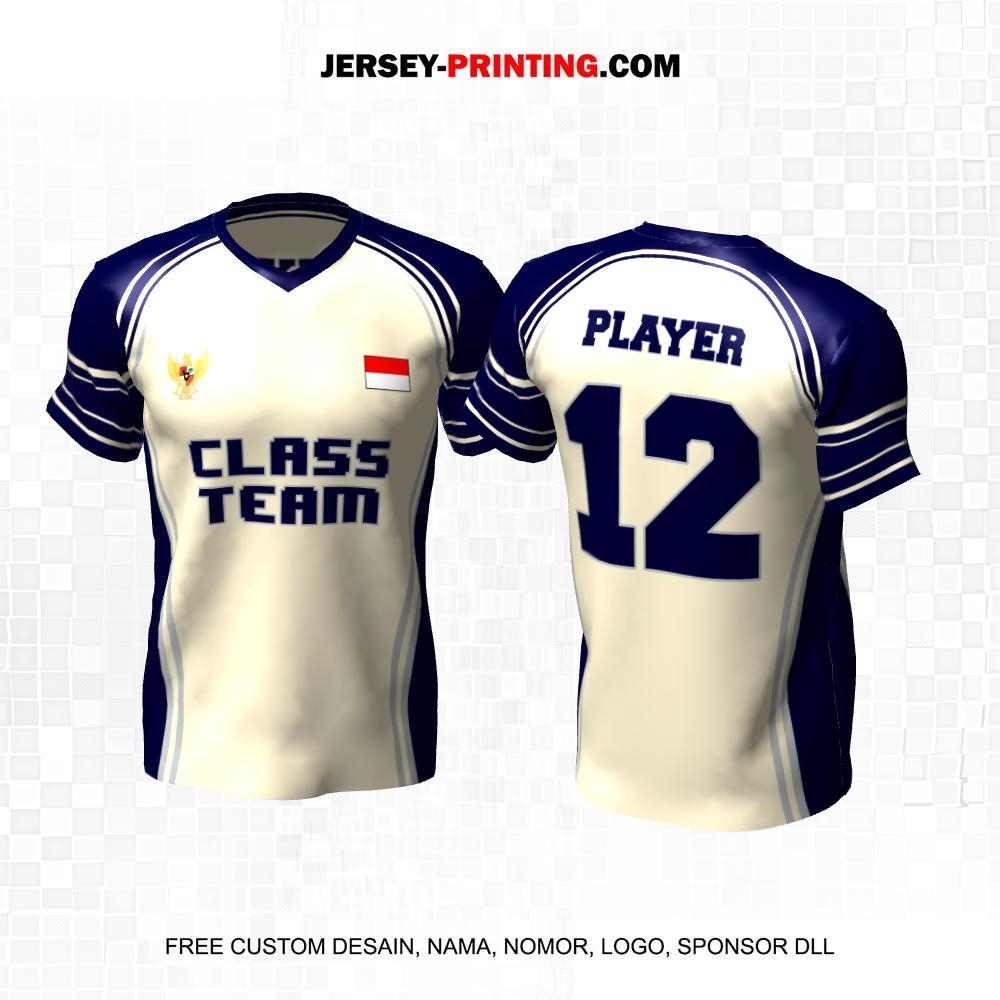 Jersey Kelas Krem Navy Motif Garis 154