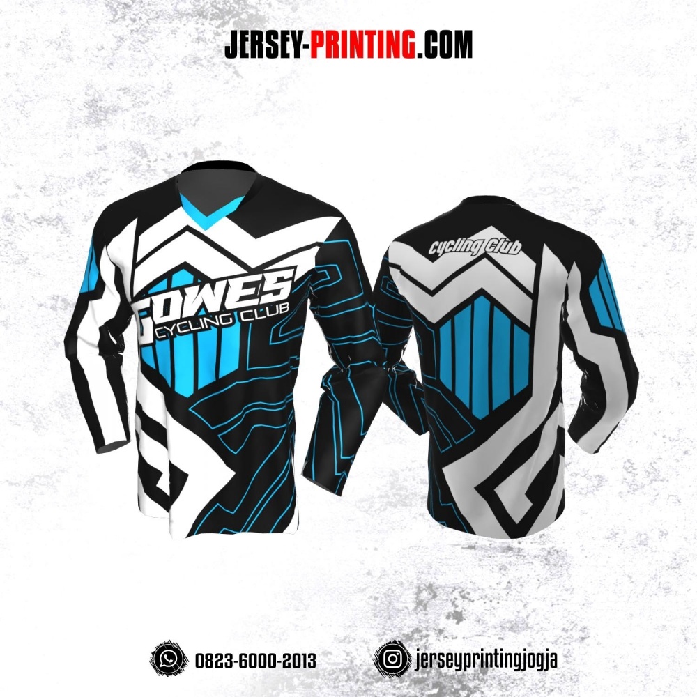 Jersey Gowes Sepeda Hitam Biru Putih Zigzag Lengan Panjang