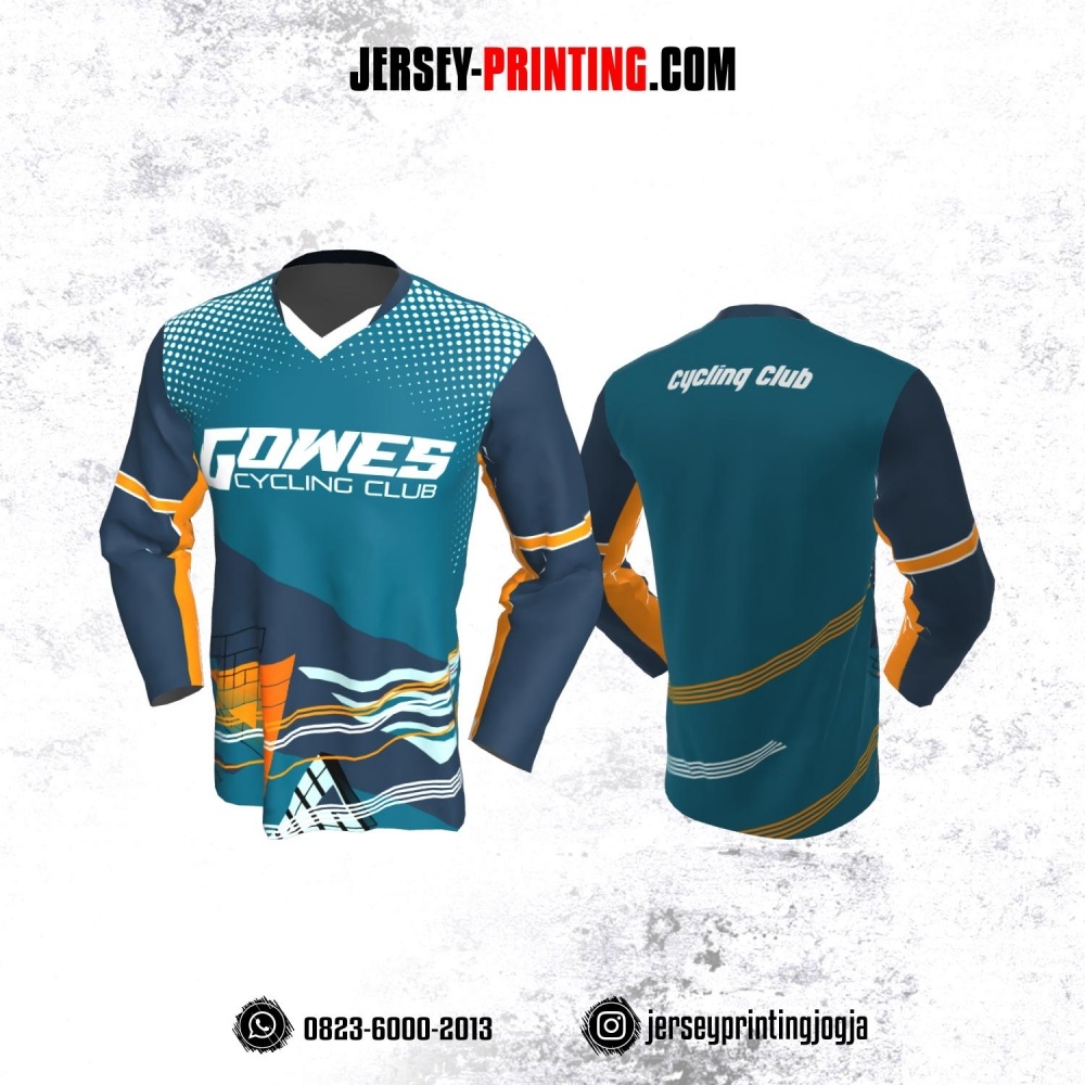 Jersey Gowes Sepeda Biru Orange Putih Garis Lengan Panjang