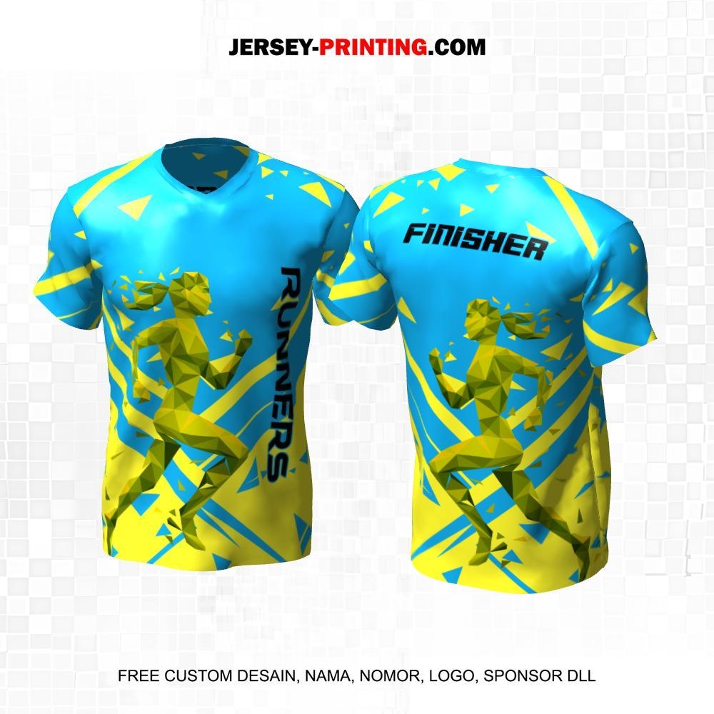 Jersey Lari Biru Kuning Motif Abstrak 581