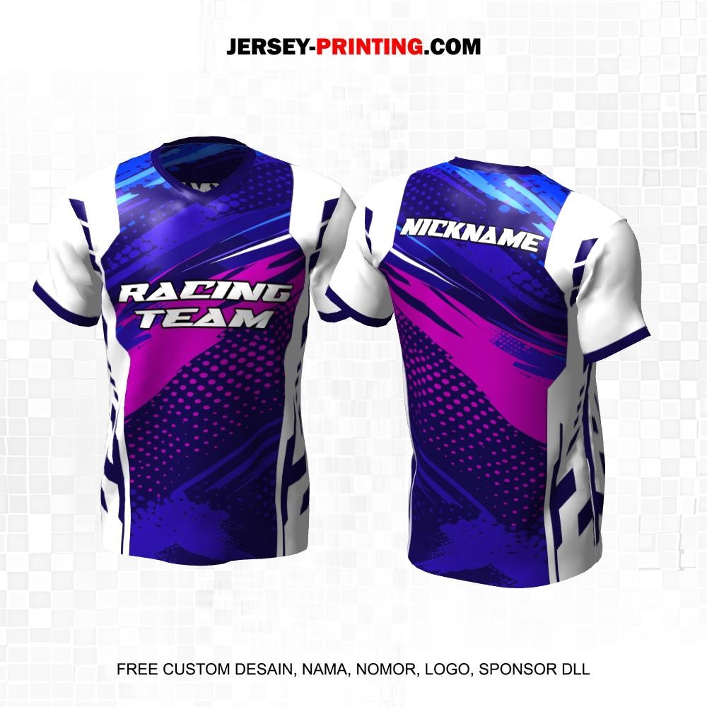 Jersey Racing Biru Ungu Putih Motif Abstrak 208