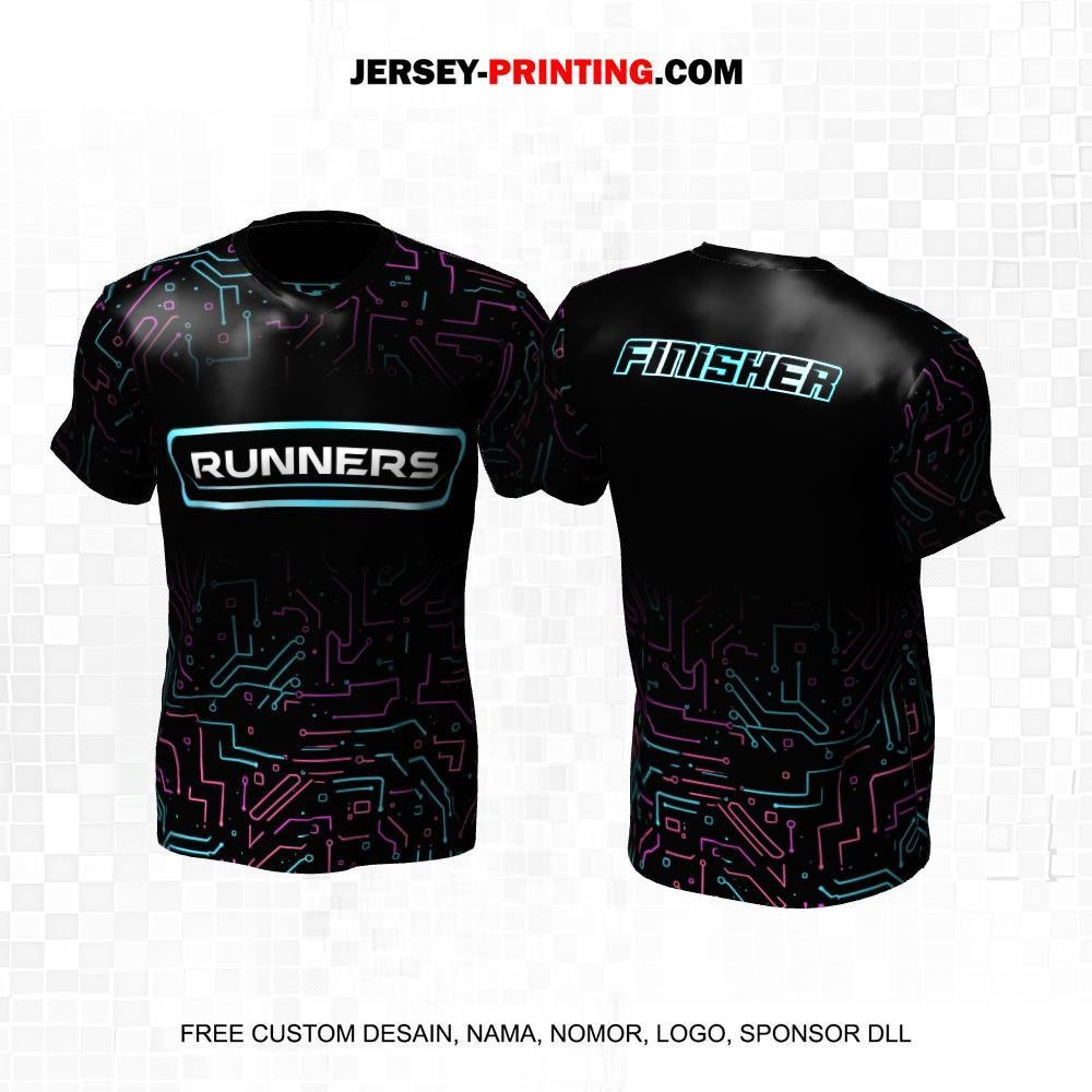Jersey Lari Hitam Pink Biru Motif Abstrak 602