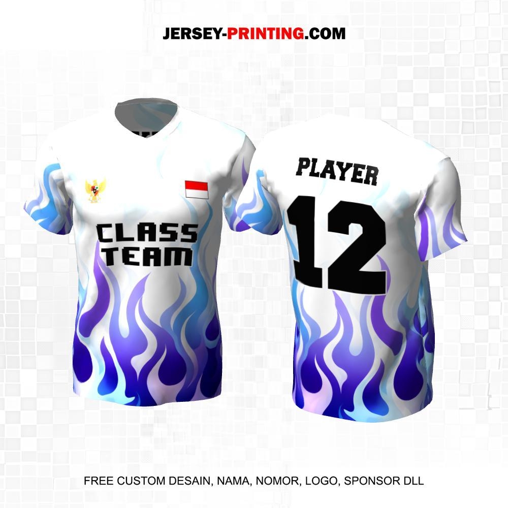 Jersey Kelas Putih Ungu Biru Motif Api 178