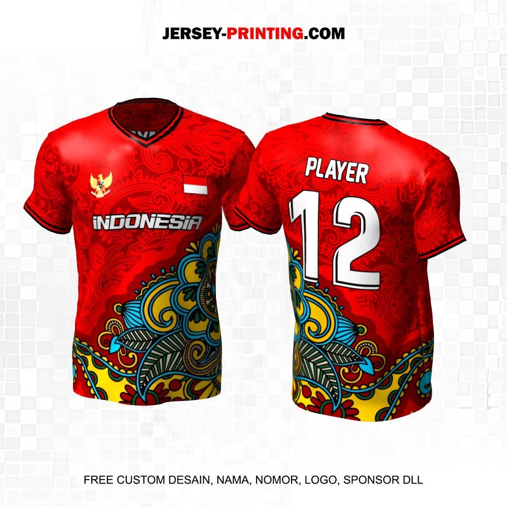 Jersey Futsal Merah Kuning Biru Motif Batik 628