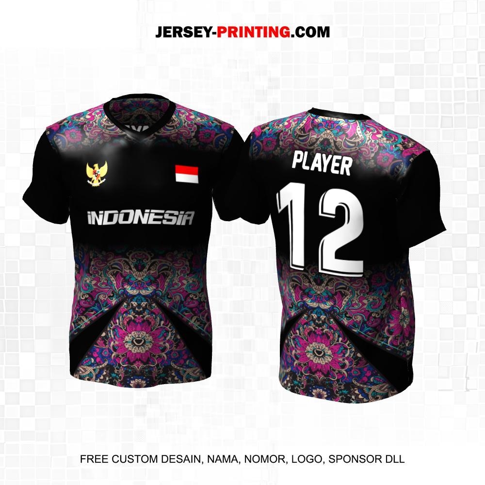 Jersey Futsal Hitam Warna Warni Motif Batik 633