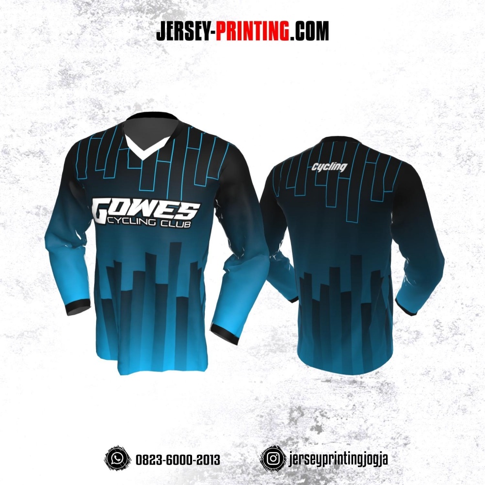 Jersey Gowes Sepeda Biru Hitam Garis Lengan Panjang