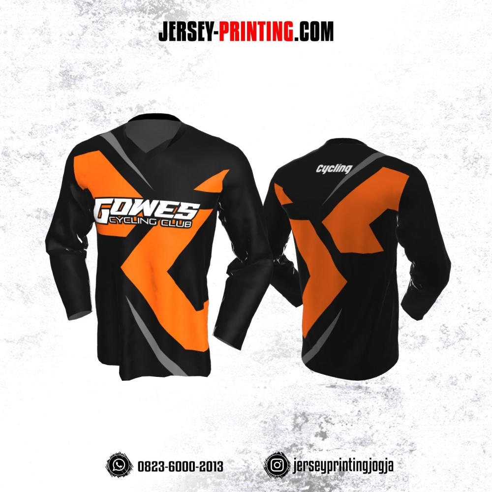 Jersey Gowes Sepeda Hitam Orange Abu Lengan Panjang