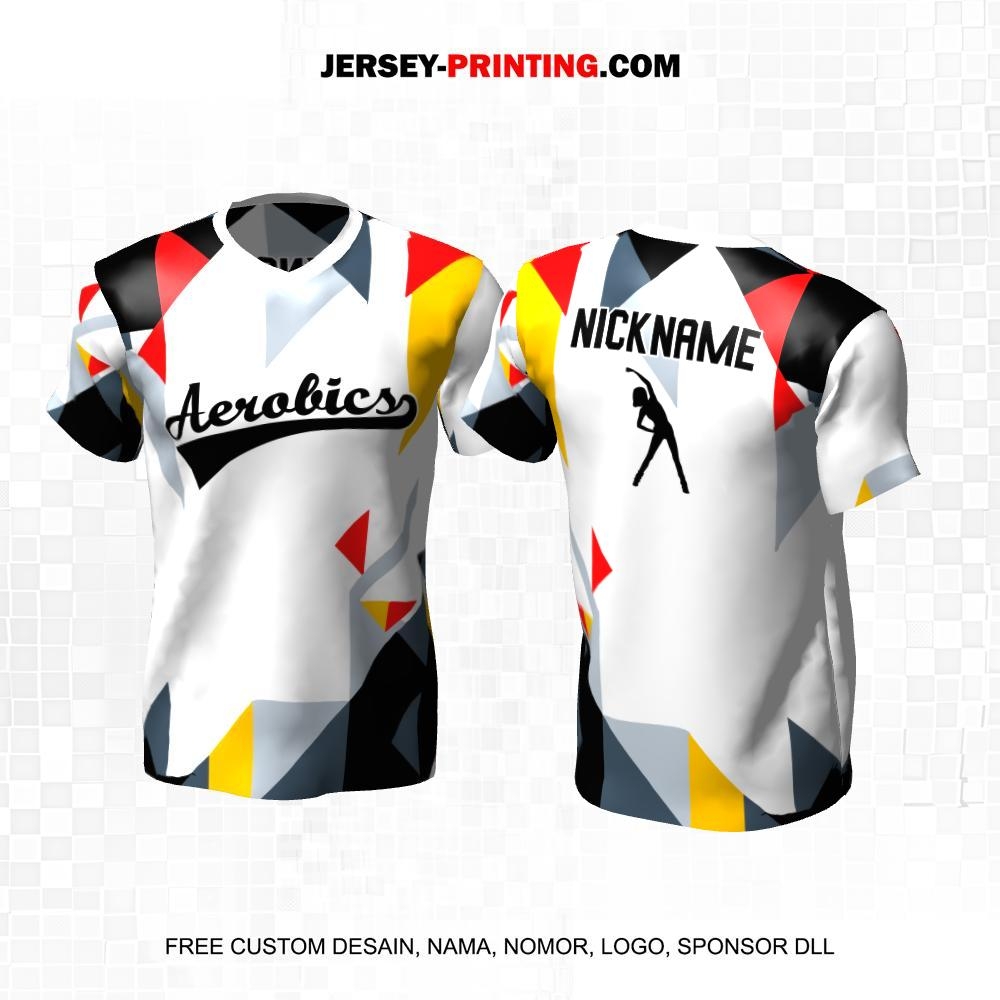 Jersey Olahraga Senam Aerobik Fitness Putih Hitam Kuning Merah Motif Abstrak 56