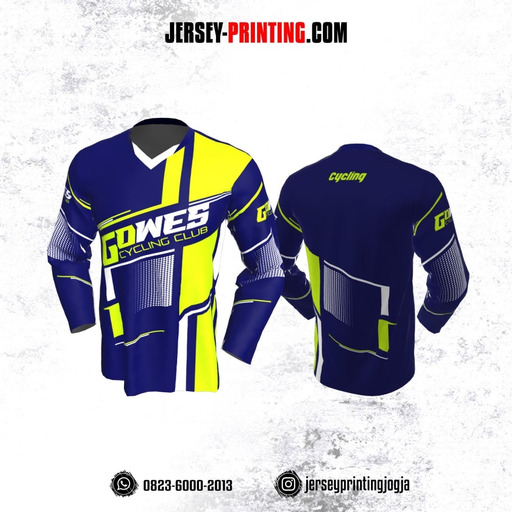 Jersey Gowes Sepeda Navy Kuning Garis Lengan Panjang