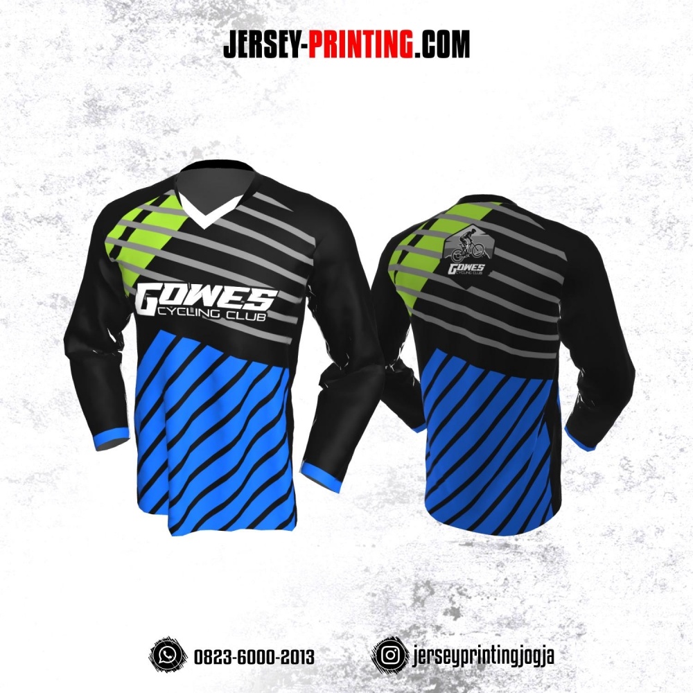 Jersey Gowes Sepeda Hitam Biru Abu Hijau Strip Lengan Panjang