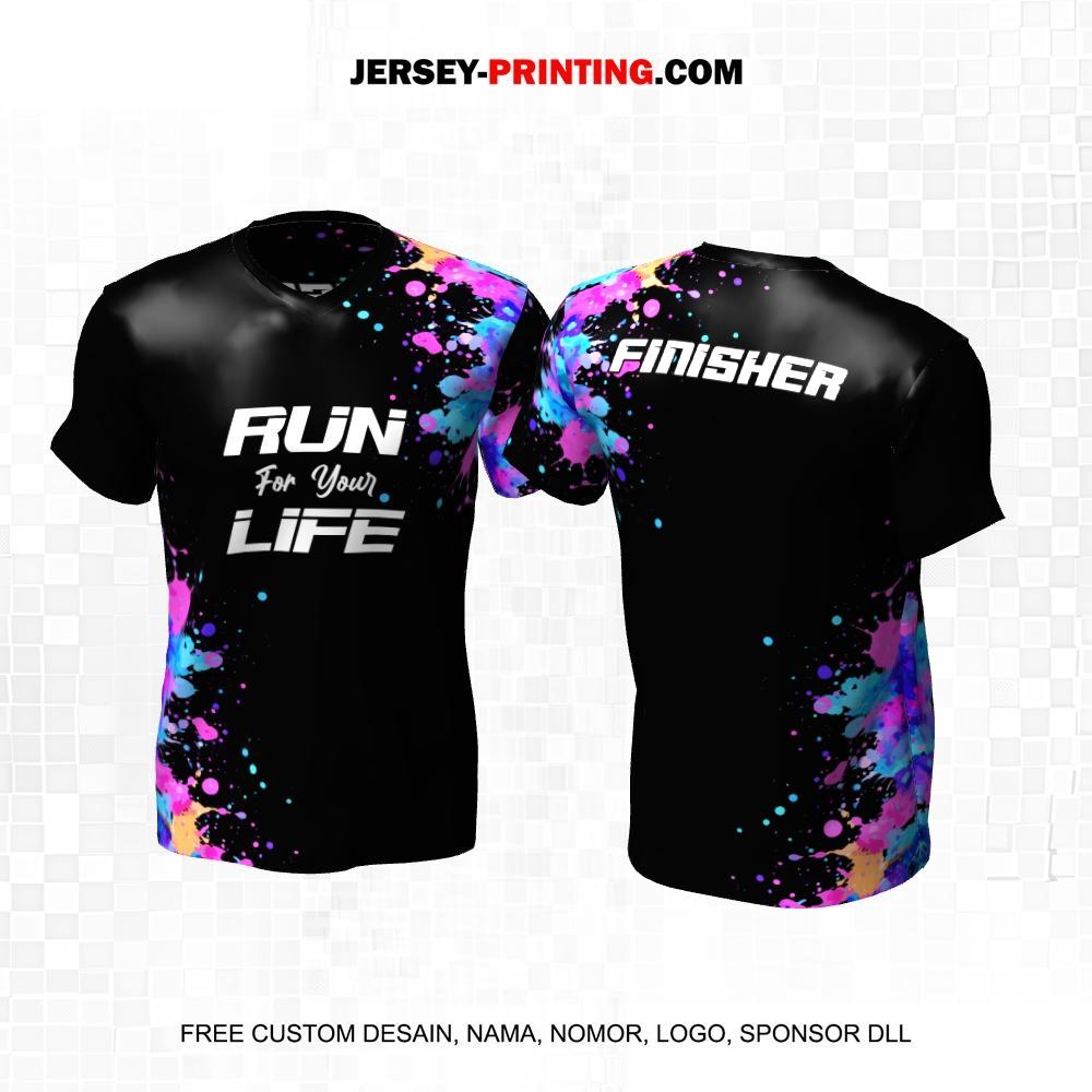 Jersey Lari Hitam Pink Ungu Motif Abstrak Splash 639