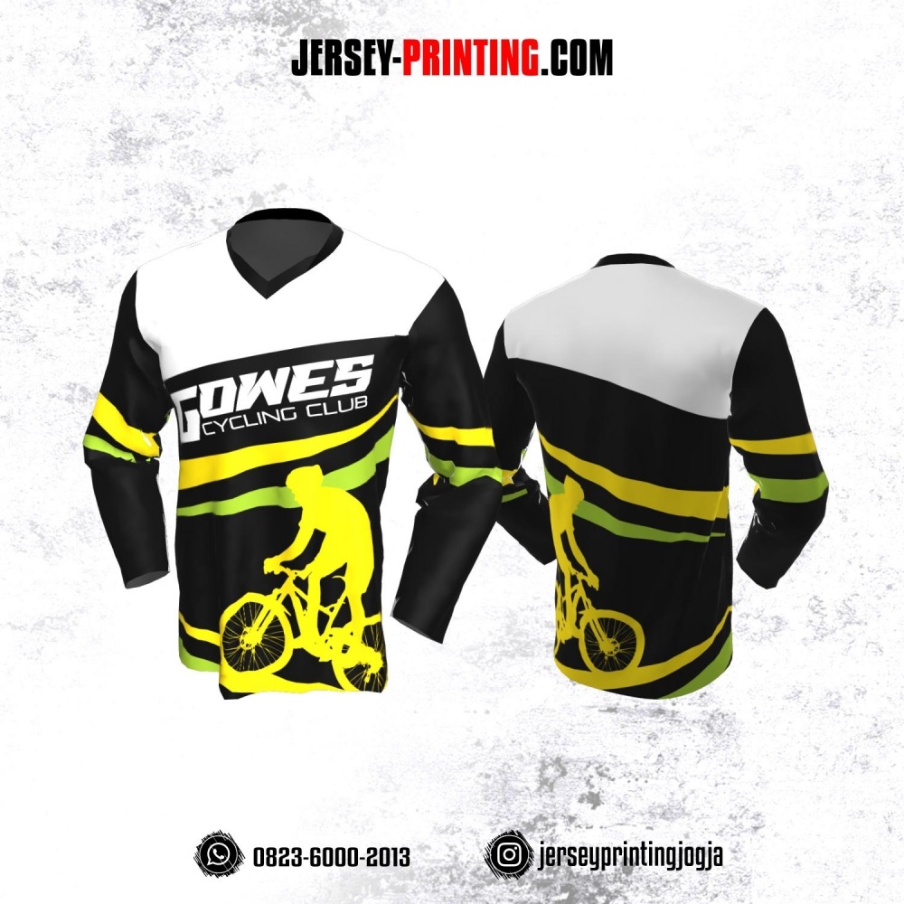 Jersey Gowes Sepeda Hitam Abu Kuning Hijau Lengan Panjang