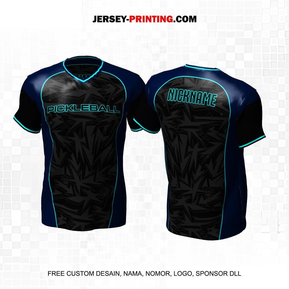 Jersey Olahraga Sport Pickleball Hitam Abu Navy Motif Abstrak 14