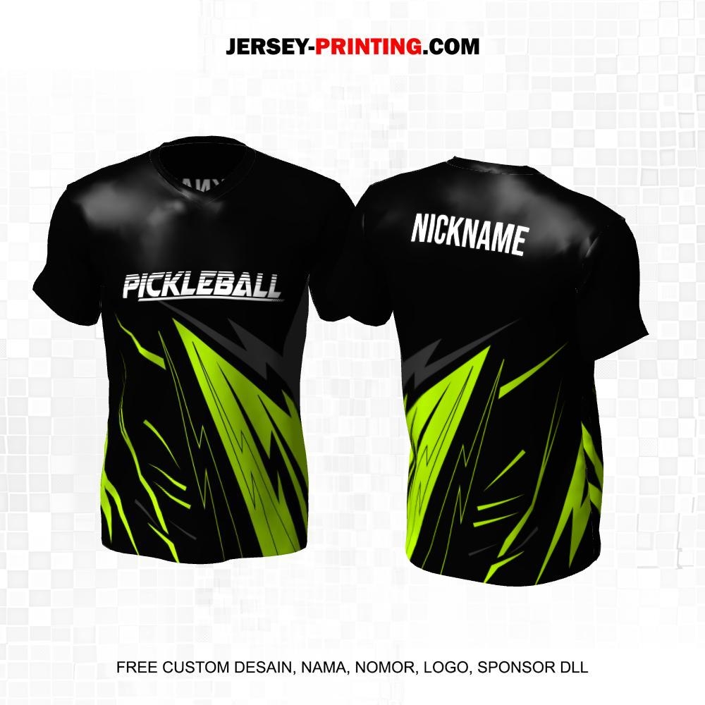 Jersey Olahraga Sport Pickleball Hitam Hijau Motif Abstrak 22