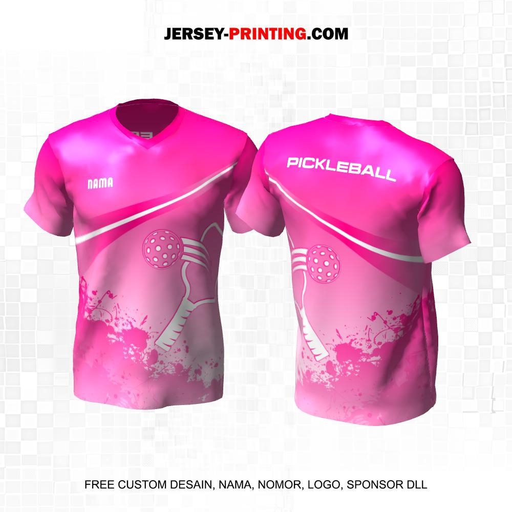 Jersey Olahraga Sport Pickleball Pink Putih Motif Abstrak 25