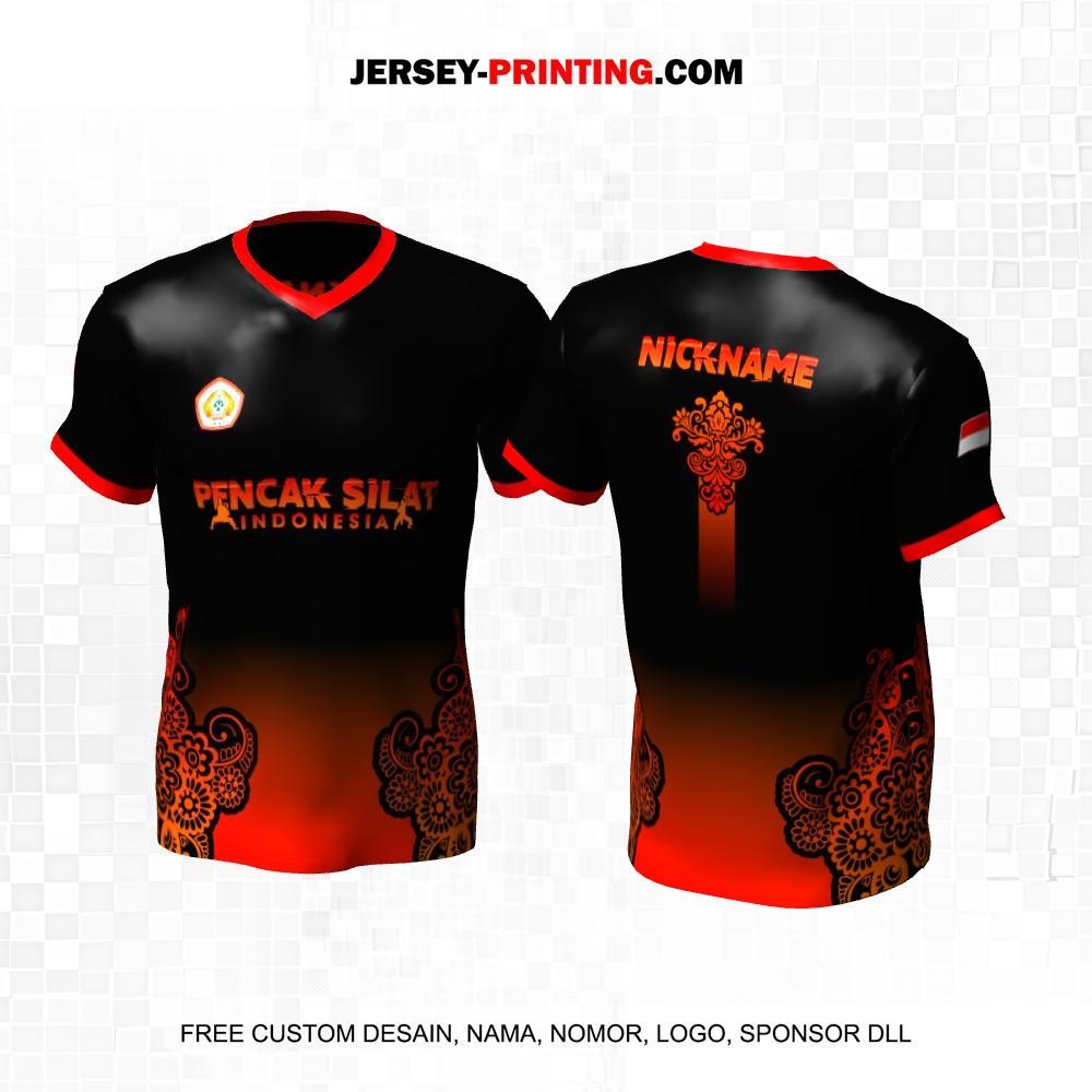 Jersey Pencak Silat Hitam Orange Motif Batik 457