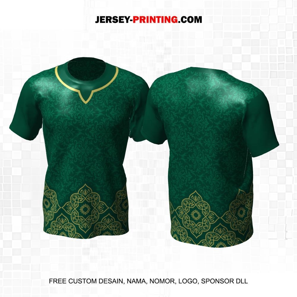 Jersey Muslim Islami Ramadhan Idul Fitri Hijau Krem Motif Batik 16