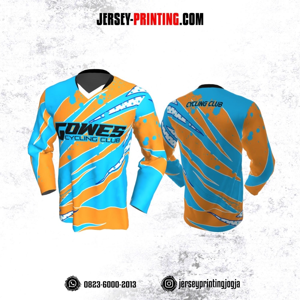 Jersey Gowes Sepeda Biru Orange Putih Lengan Panjang