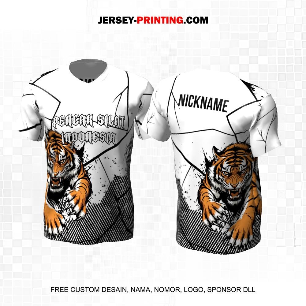 Jersey Pencak Silat Putih Hitam Motif Abstrak Harimau 465