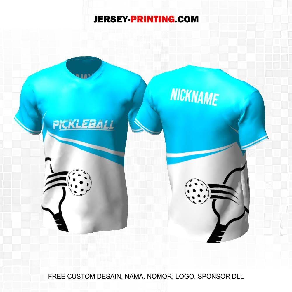 Jersey Olahraga Sport Pickleball Biru Putih Motif Abstrak 35