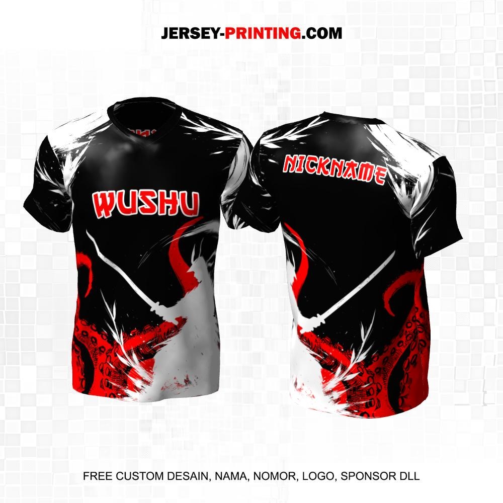 Jersey Wushu Hitam Merah Putih Motif Abstrak Samurai Tentakle Gurita 31