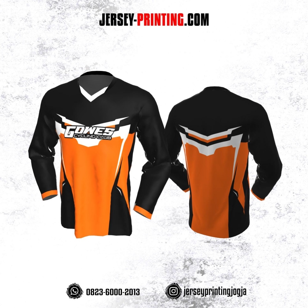 Jersey Gowes Sepeda Hitam Orange Putih Lengan Panjang