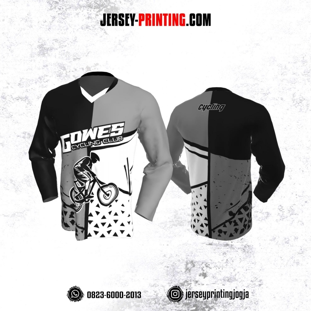 Jersey Gowes Sepeda Abu Hitam Putih Segitiga Lengan Panjang