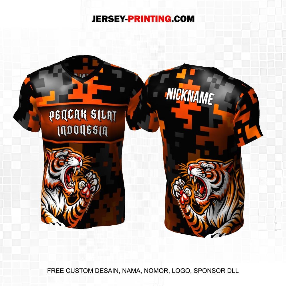Jersey Pencak Silat Hitam Orange Motif Rubik Harimau 527